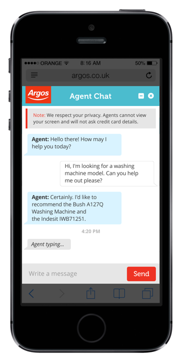 Visual UI Test for the chat functions of the Argos app.