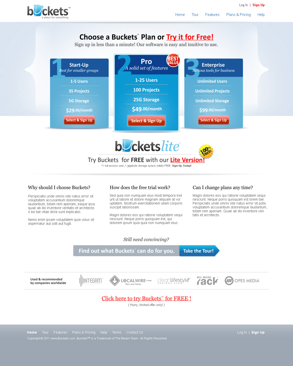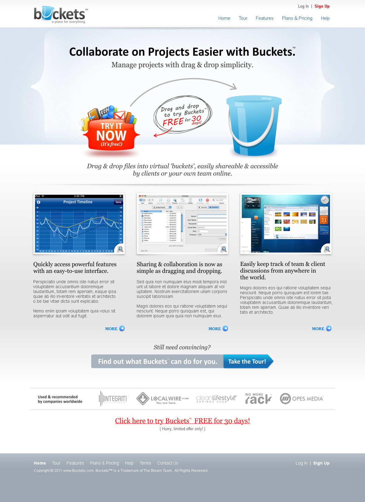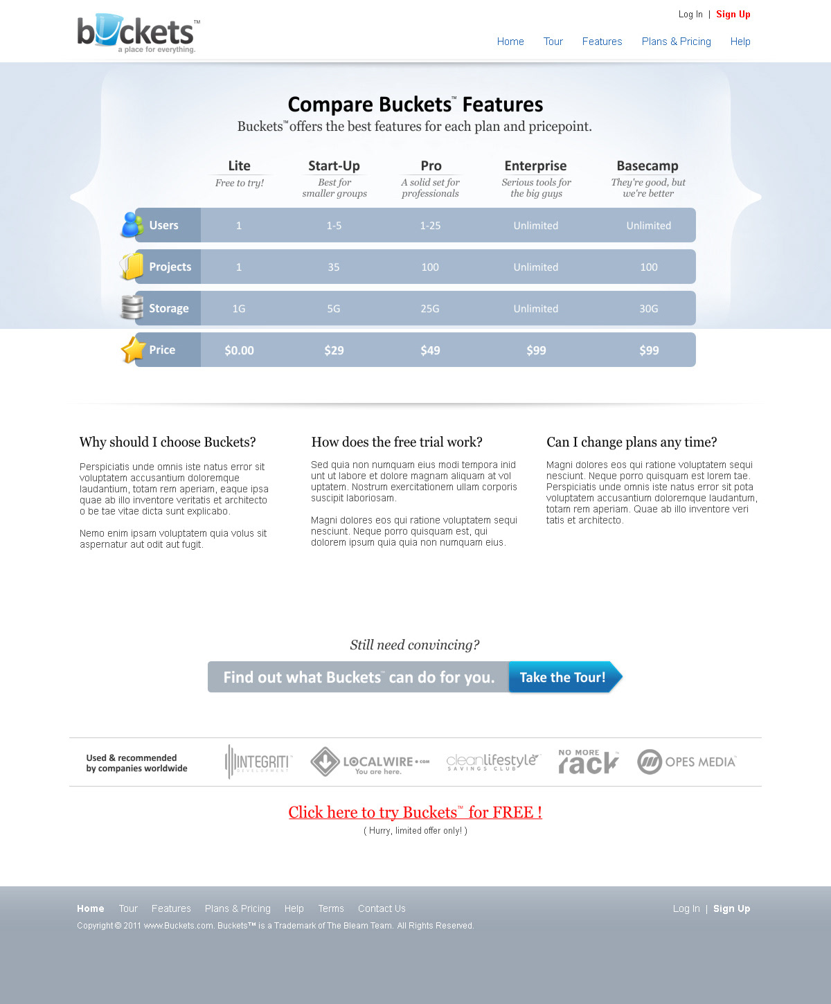 Identity and web design for Buckets, project management software