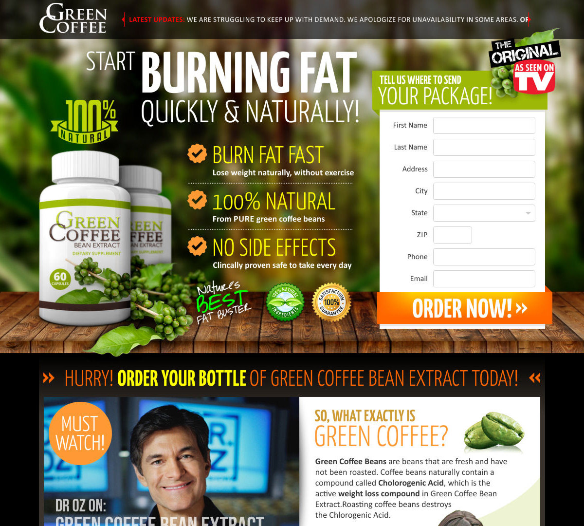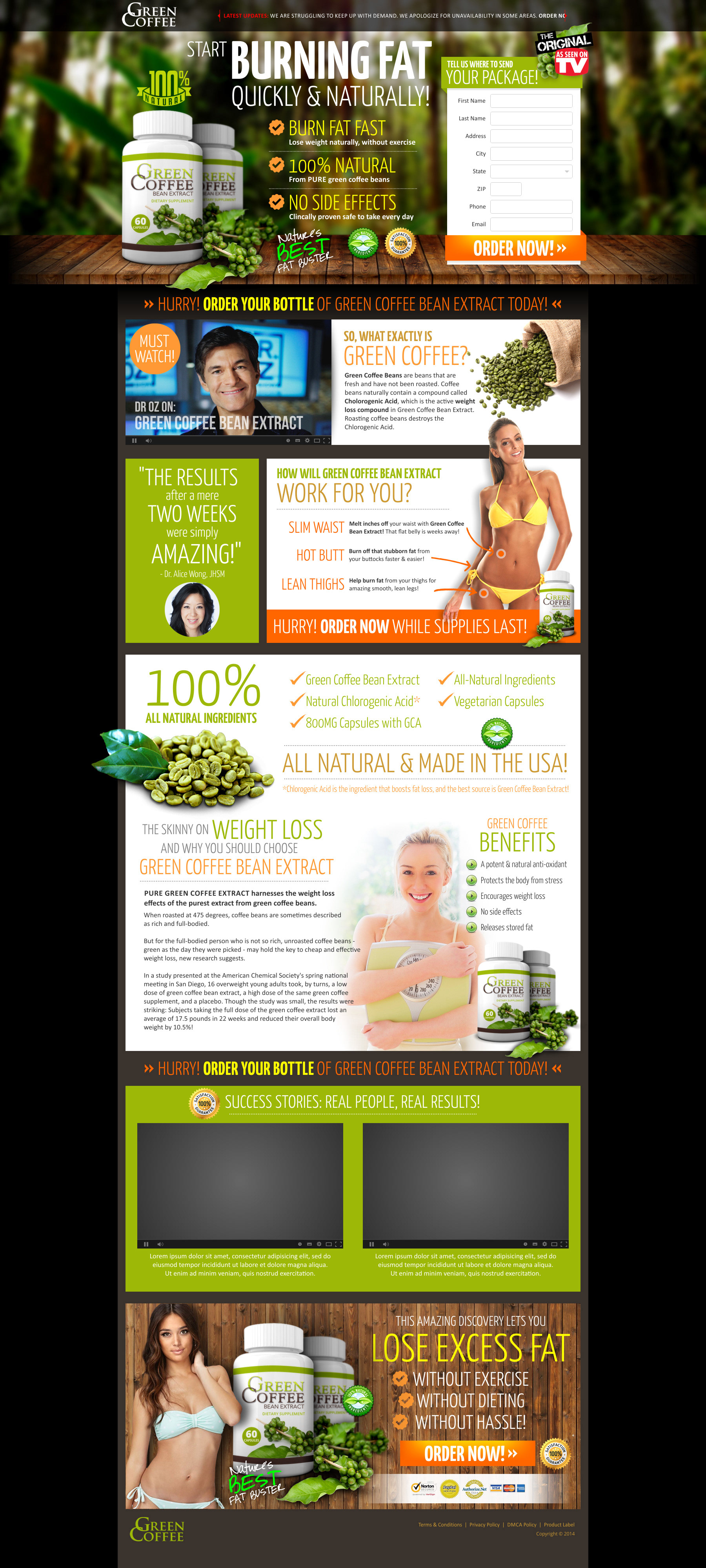 Landing page for a green coffee product.